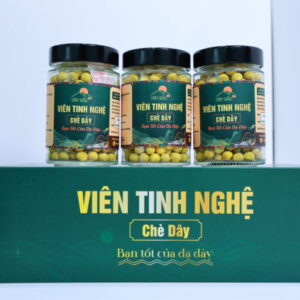 Viên tinh nghệ chè dây là sản phẩm bảo vệ sức khỏe dạ dày được tạo ra từ sự kết hợp hài hòa giữa các dược liệu thiên nhiên truyền thống như nghệ nếp đỏ, chè dây, trà xanh và mật ong, kết hợp với công nghệ hiện đại. Sản phẩm không chỉ hỗ trợ giảm viêm, làm lành tổn thương niêm mạc dạ dày, mà còn cải thiện tiêu hóa, làm sạch vi khuẩn Helicobacter pylori (HP) – tác nhân chính gây viêm loét dạ dày, đồng thời ngăn ngừa nguy cơ tái phát các bệnh liên quan đến viêm loét dạ dày – tá tràng. Sự kết hợp giữa truyền thống và hiện đại, thiên nhiên và khoa học đã tạo nên một sản phẩm độc đáo, mang lại hiệu quả vượt trội và khơi dậy niềm tin về giá trị của dược liệu Việt Nam.